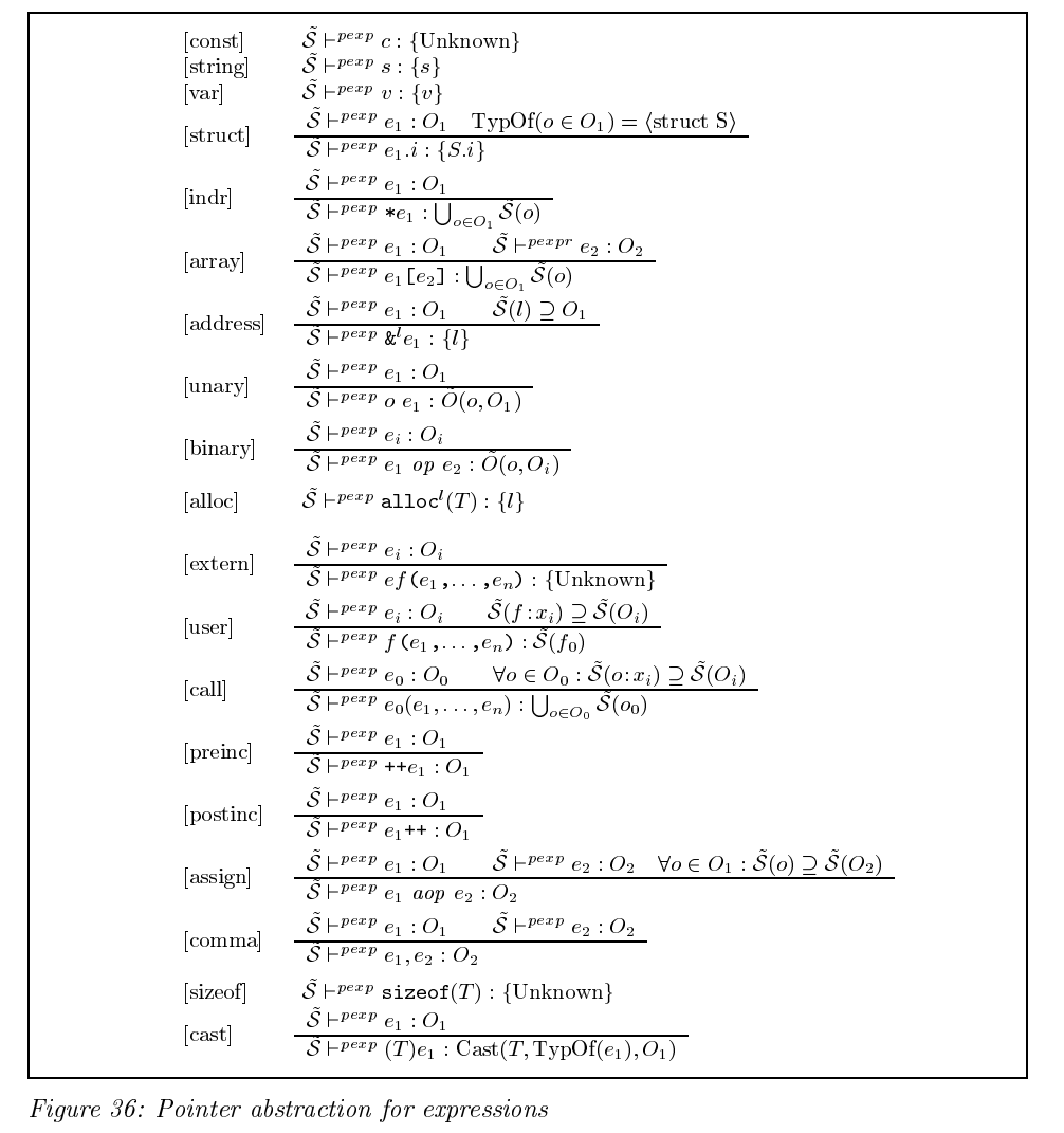 很明显,对于所有程序集合ALoc都是有限的。这个分析将指针映射到ALoc集合中的元素。元素Unknown标记一个任意(不知道)地址。这意味着该分析进行了如下抽象。
